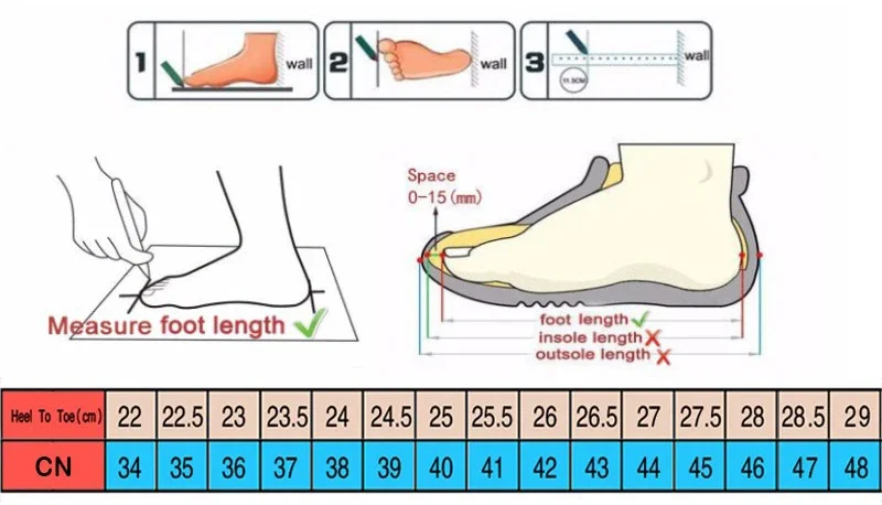 (according to the measured data to choose the corresponding size, if your feet are wider or fat, it is recommended to choose a larger size.